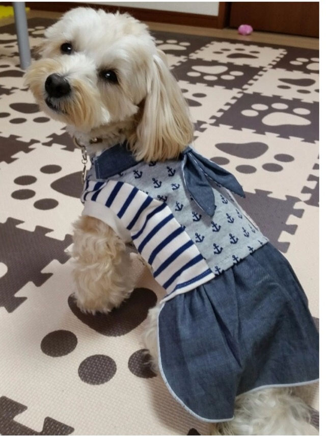 着用*襟リボンワンピース・ハンドウォーマーペア